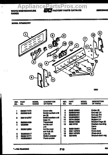 Parts for Frigidaire KF350GDW7: 02 - Control Panel Parts