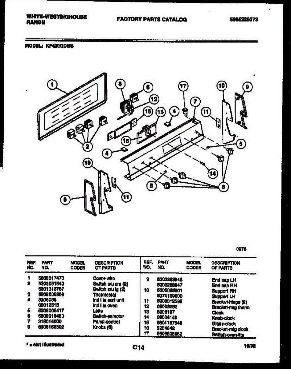 Parts for Frigidaire KF420GDH8: 02 - Control Panel Parts
