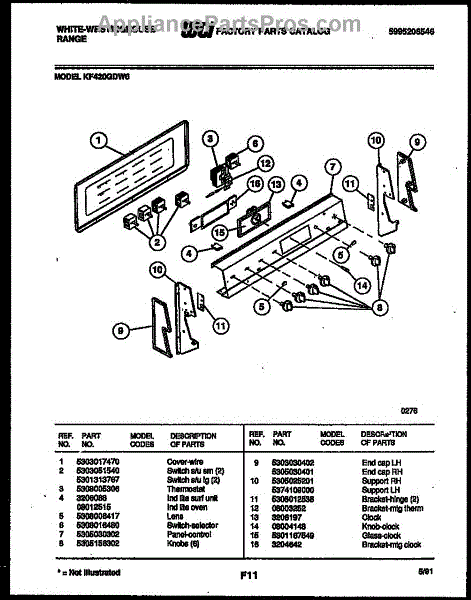 Parts for Frigidaire KF420GDW6: 02 - Control Panel Parts