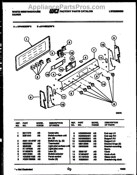Parts for Frigidaire KF440GDF3: 02 - Control Panel Parts