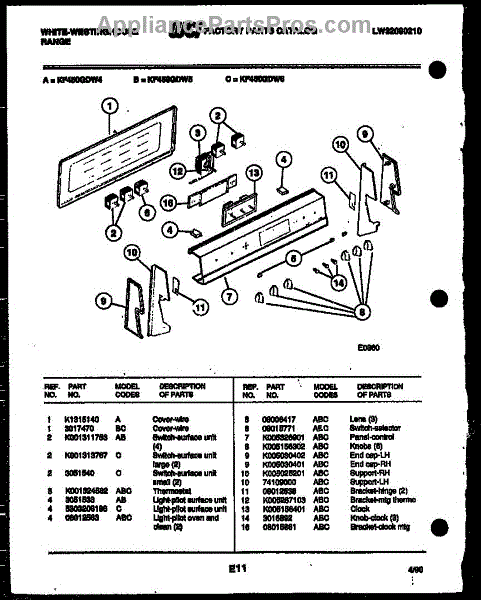 Parts for Frigidaire KF450GDD5: 02 - Control Panel Parts
