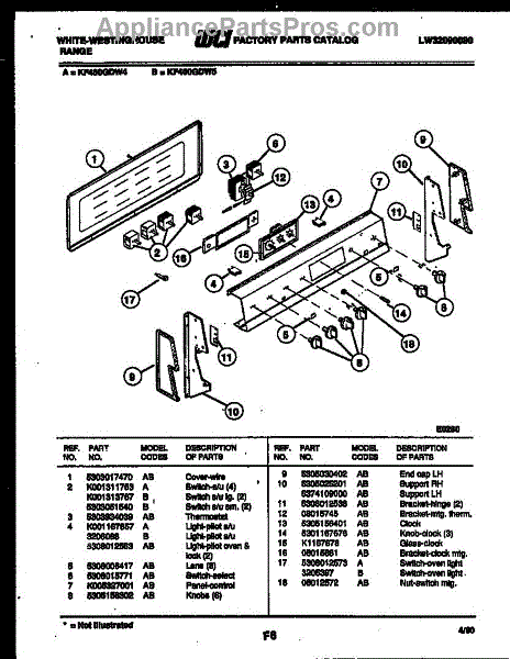 Parts for Frigidaire KF460GDH4: 02 - Control Panel Parts