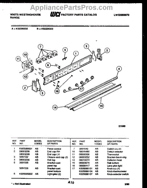 Parts for Frigidaire KS220GDW3: 02 - Control Panel Parts