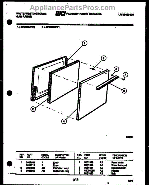 Parts for Frigidaire GF201KXW0: 03 - Door Parts