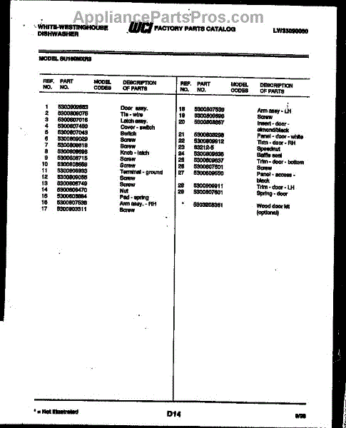 Parts for Frigidaire GF201KXW2: 03 - Door Parts