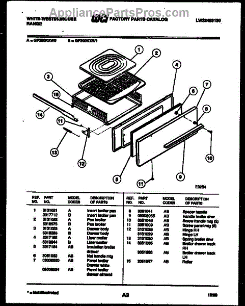 Parts for Frigidaire GF300KXW1: 03 - Broiler Drawer Parts
