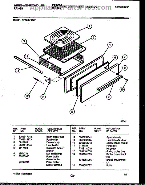 Parts for Frigidaire GF300KXW2: 03 - Broiler Drawer Parts