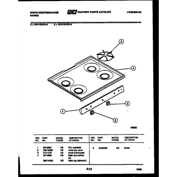 Parts for Frigidaire GF410HXD4: 03 - Cooktop Parts