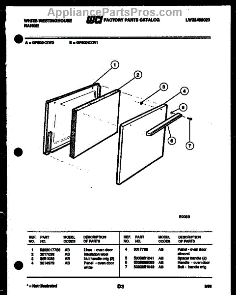 Parts for Frigidaire GF600KXW0: 03 - Door Parts