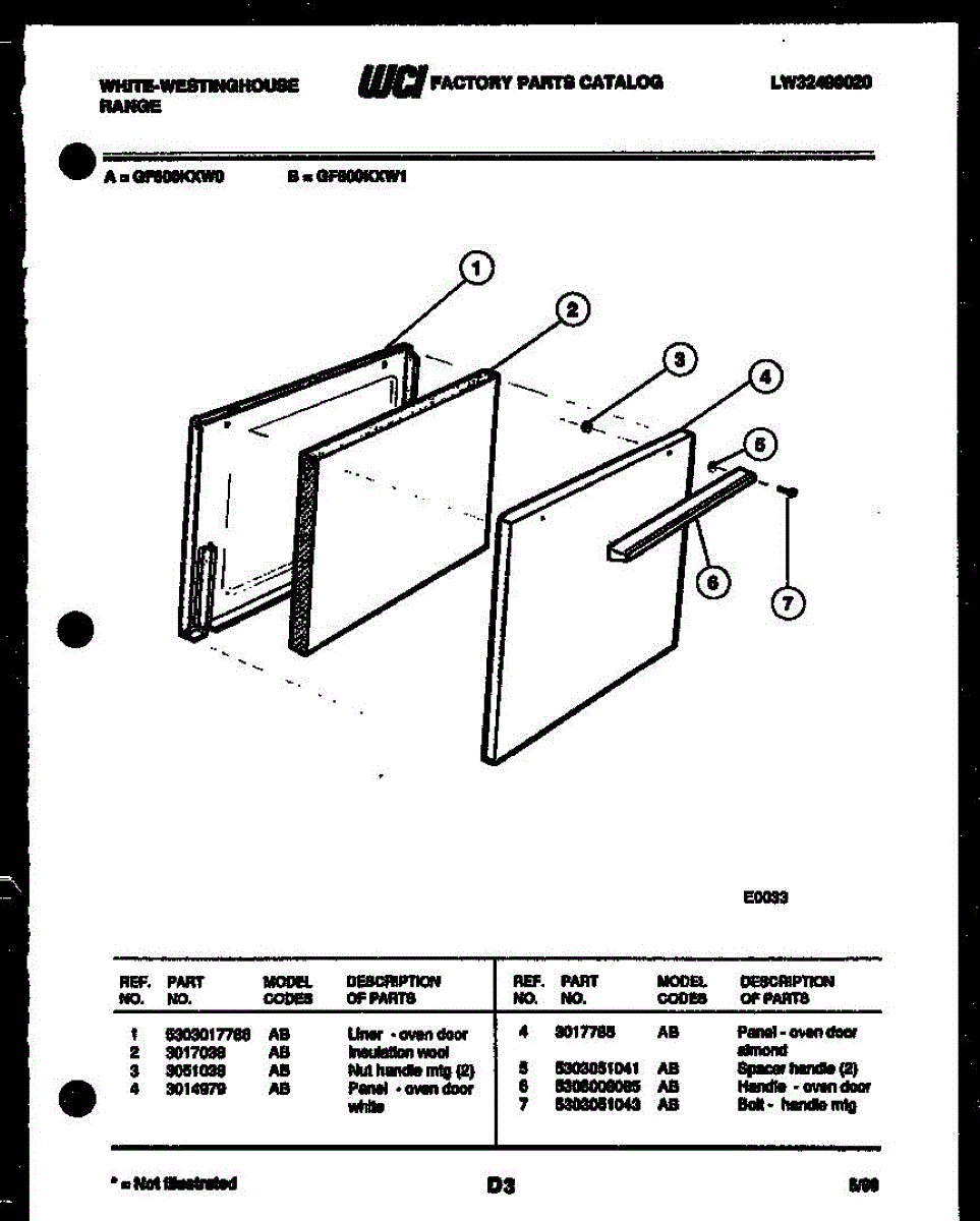 Parts for Frigidaire GF600KXW1: 03 - Door Parts