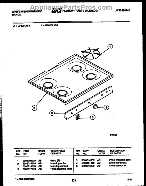 Parts for Frigidaire GF625LD1: 03 - Cooktop Parts