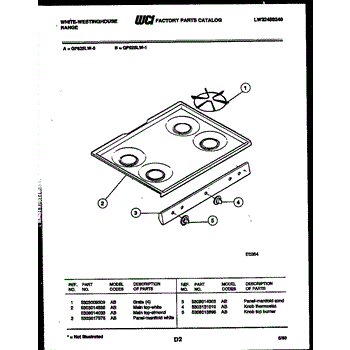Parts for Frigidaire GF625LW0: 03 - Cooktop Parts