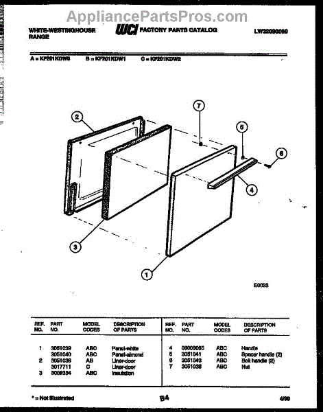 Parts for Frigidaire KF201KDW0: 03 - Door Parts