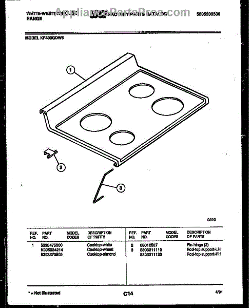 Parts for Frigidaire KF400GDW6: 03 - Cooktop Parts