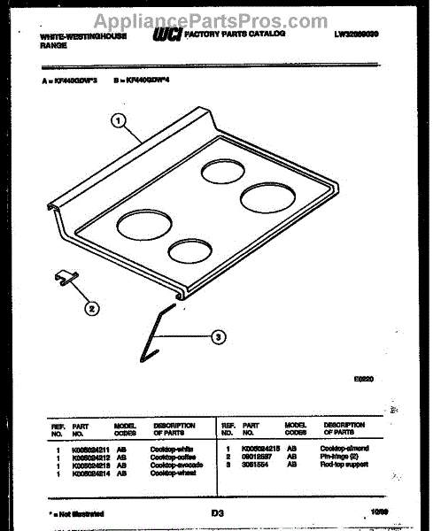Parts for Frigidaire KF440GDF3: 03 - Cooktop Parts