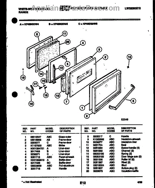 Parts for Frigidaire KF450GDV4: 03 - Door Parts