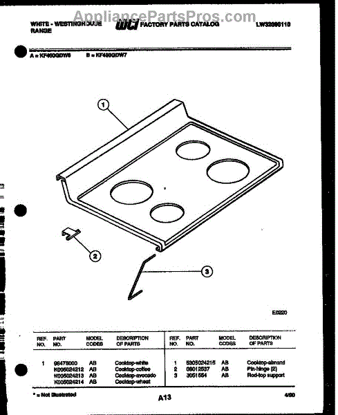 Parts for Frigidaire KF460GDD7: 03 - Cooktop Parts