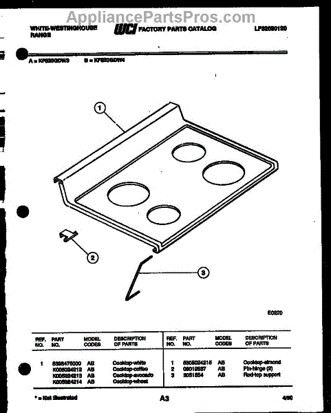 Parts for Frigidaire KF520GDW4: 03 - Cooktop Parts