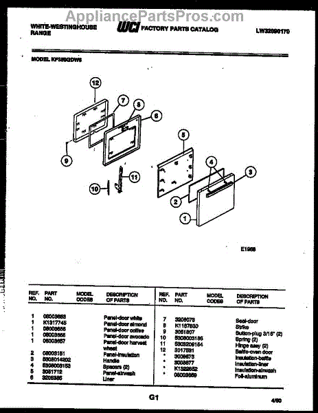 Parts for Frigidaire KF350GDH6: 04 - Door Parts
