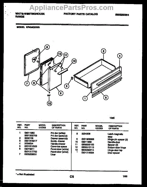 Parts for Frigidaire KF404GDW6: 04 - Door And Drawer Parts