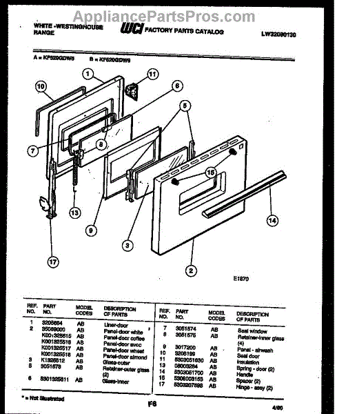 Parts for Frigidaire KF520GDF6: 04 - Door Parts