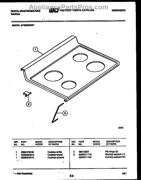 Parts for Frigidaire KF560GDW7: 04 - Cooktop Parts