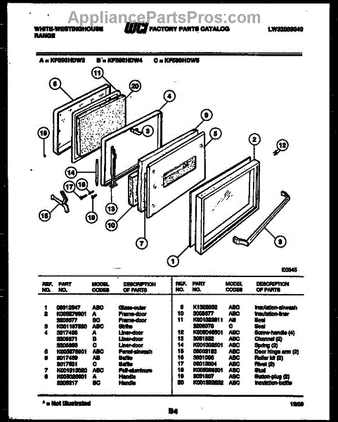 Parts for Frigidaire KF590HDV4: 04 - Door Parts