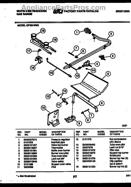 Parts for Frigidaire GF201ND3: 05 - Burner, Manifold And Gas Control Parts