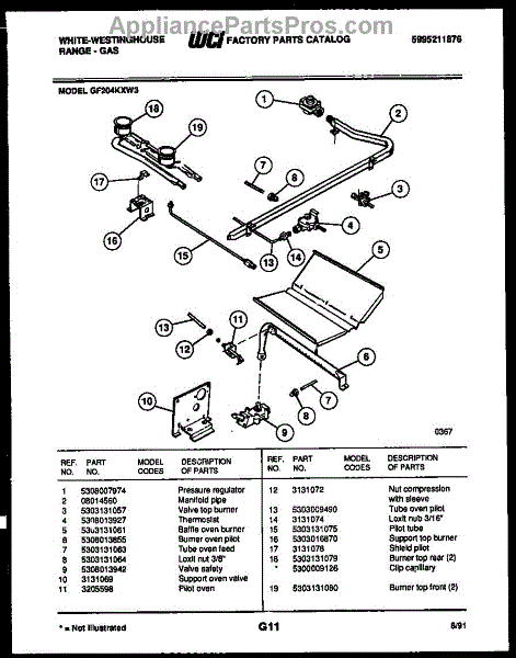 Parts for Frigidaire GF204KXD3: 05 - Burner, Manifold And Gas Control Parts