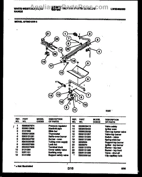 Parts for Frigidaire GF600HXW3: 05 - Burner, Manifold And Gas Control Parts