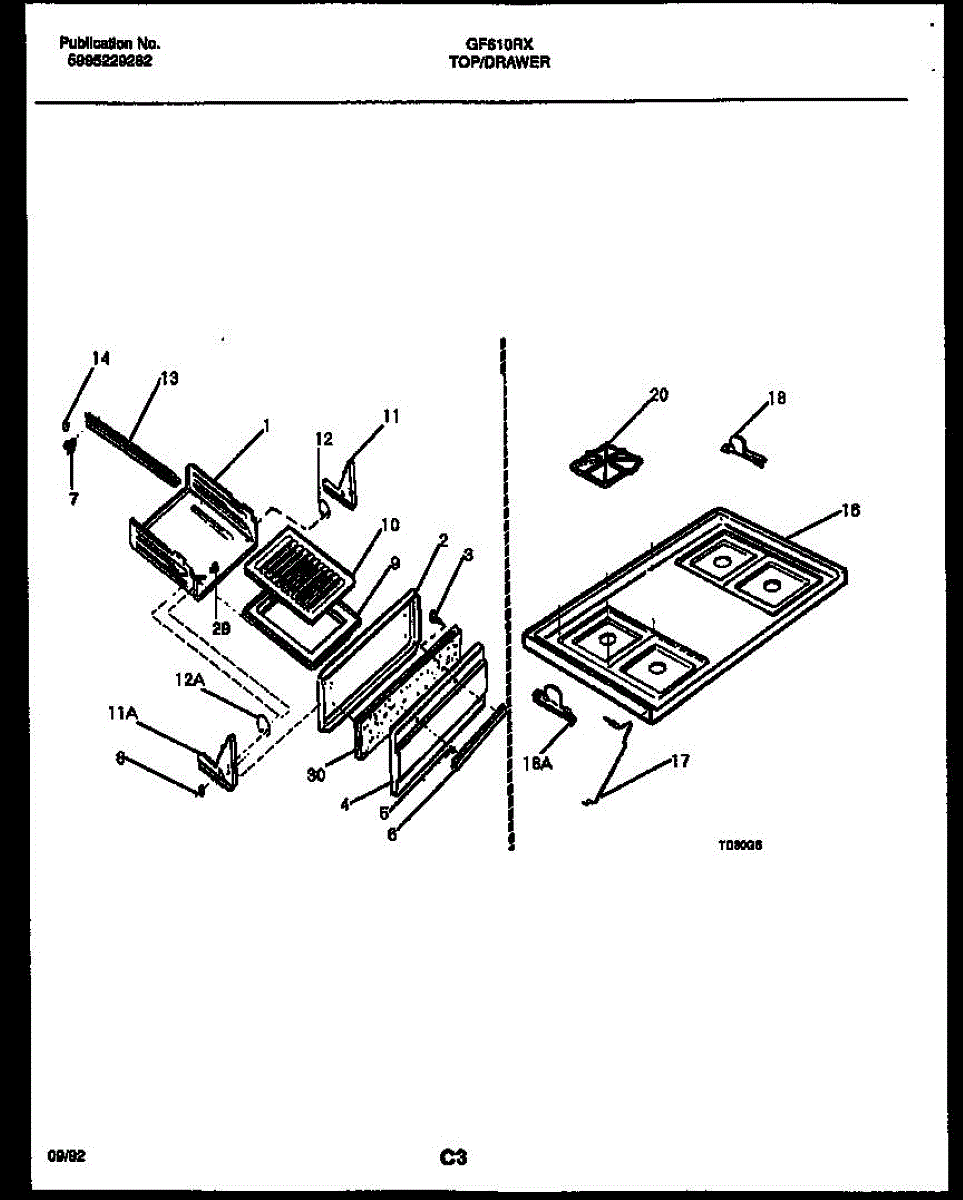 Parts for Frigidaire GF610RXW1: 05 - Cooktop And Broiler Drawer Parts