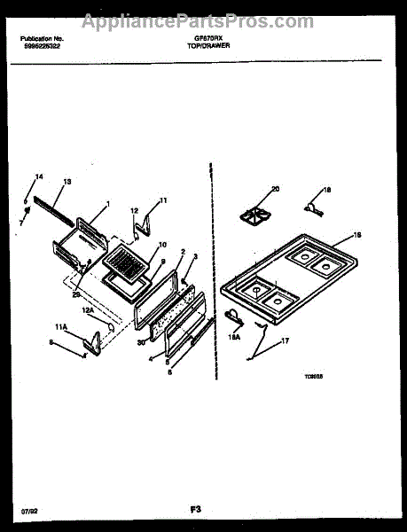 Parts for Frigidaire GF670RXW1: 05 - Cooktop And Broiler Drawer Parts