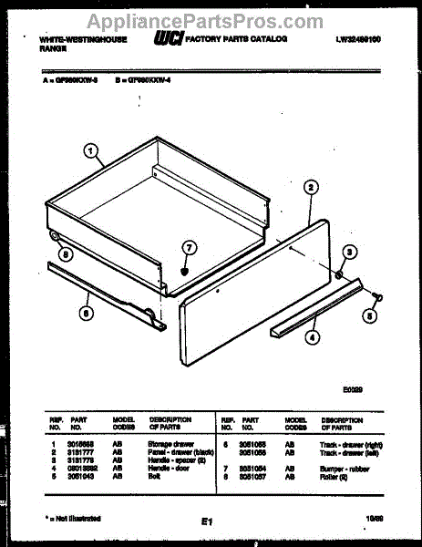 Parts for Frigidaire GF980KXD4: 05 - Drawer Parts