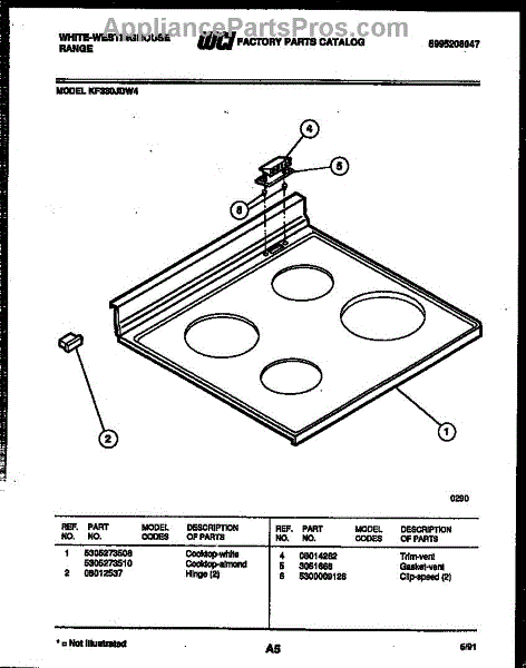 Parts for Frigidaire KF330JDW4: 05 - Cooktop Parts