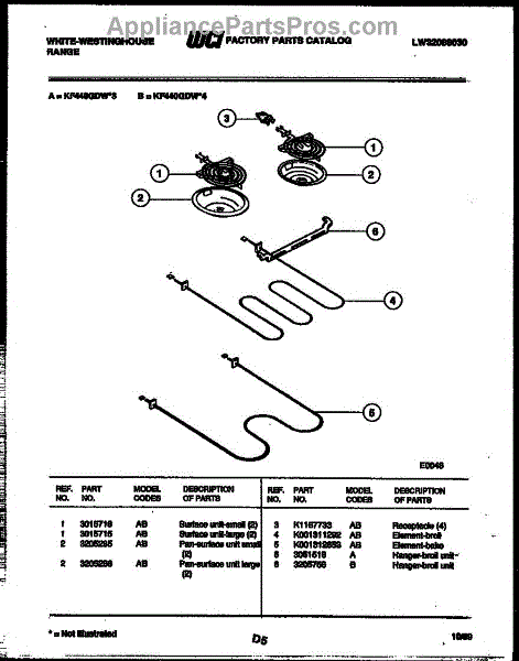 Parts for Frigidaire KF440GDV4: 05 - Broiler Parts