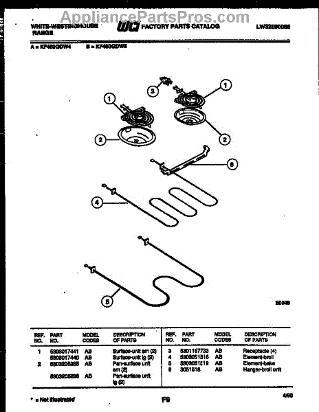 Parts for Frigidaire KF460GDW5: 05 - Broiler Parts