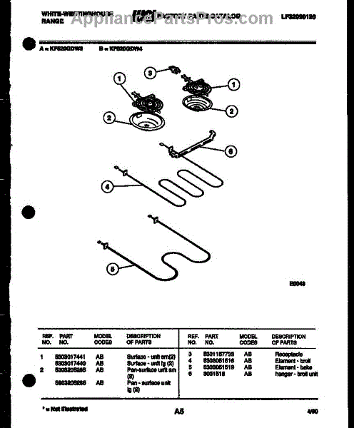 Parts for Frigidaire KF520GDV4: 05 - Broiler Parts