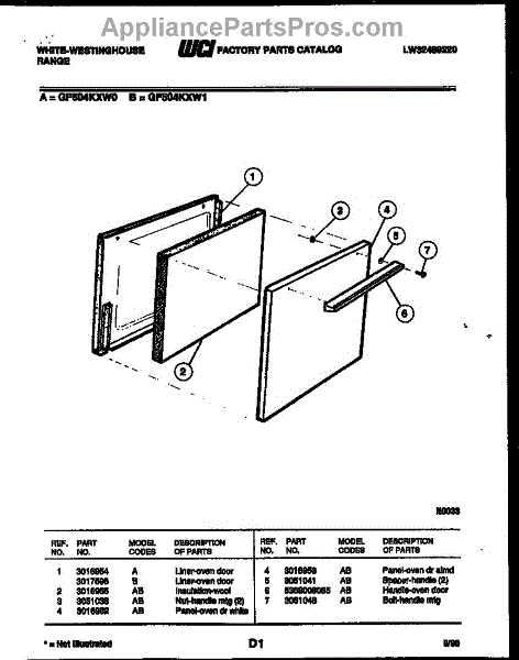 Parts for Frigidaire GF504KXW0: 06 - Door Parts