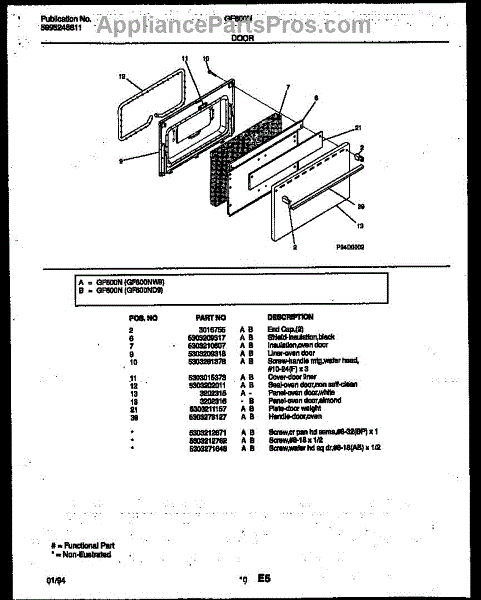 Parts for Frigidaire GF600NW9: 06 - Door Parts