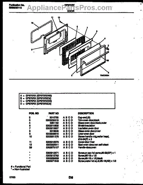 Parts for Frigidaire GF670RXD3: 06 - Door Parts