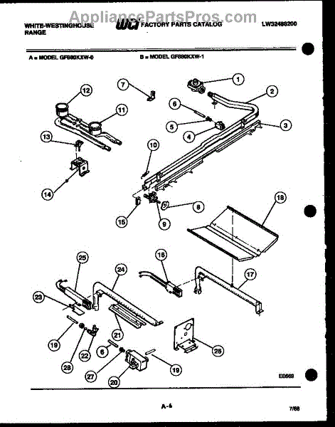 Controls gas flow to range burners. Replace if regulator is worn, leaking, or damaged to restore proper gas delivery and maintain safe operation.