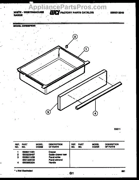 Parts for Frigidaire GW30SPEW1: 06 - Drawer Parts