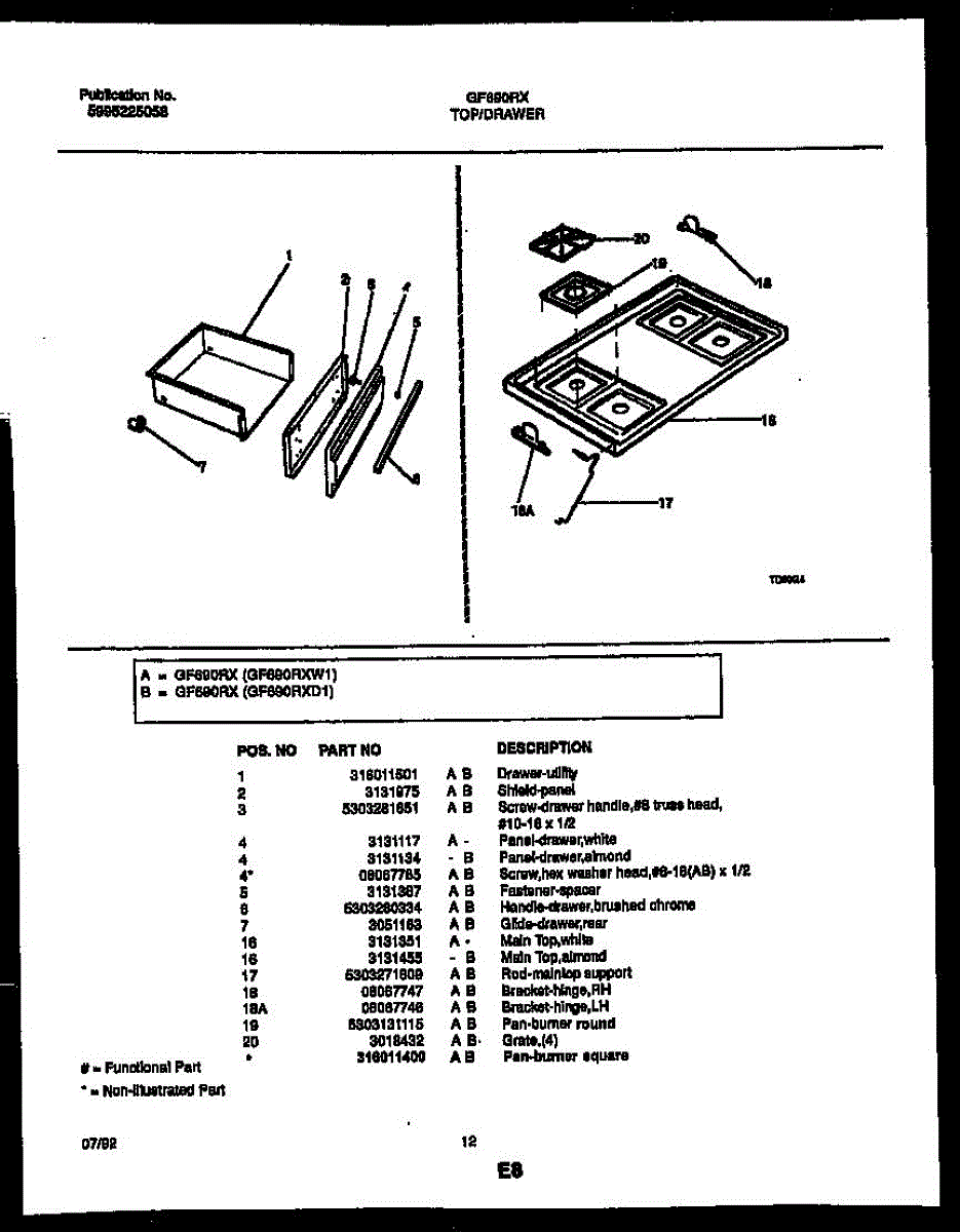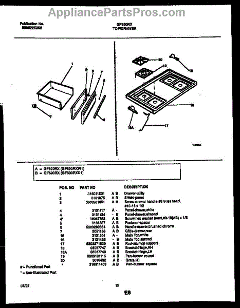Parts for Frigidaire GF690RXD1: 07 - Cooktop And Drawer Parts