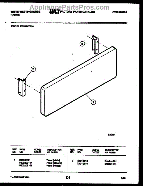 Parts for Frigidaire KF100KDH4: 07 - Panel With Bracket Parts