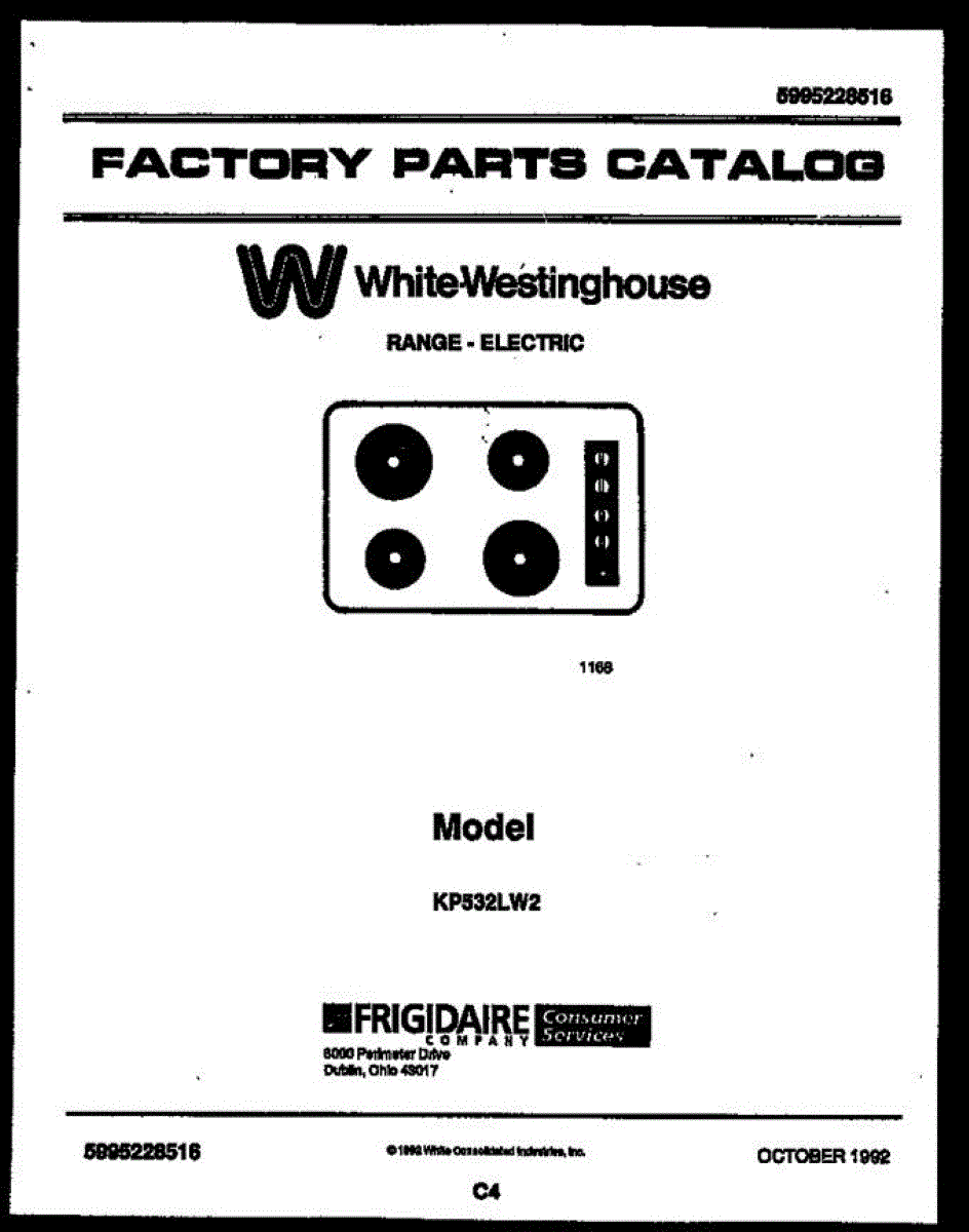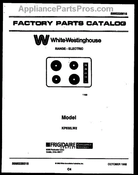 Parts for White Westinghouse KP532LW2 LUSTERLOY: White-Westinghouse Range - Electric - 5995228516 Cover Parts