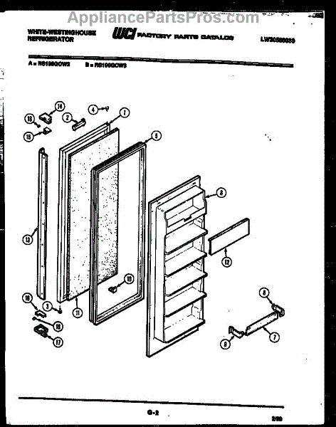 Parts for Frigidaire RS196GCH2: 02 - Freezer Door Parts
