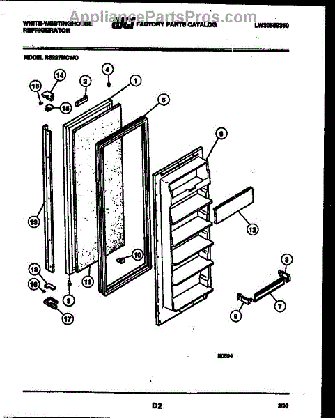 Parts for Frigidaire RS227MCW0: 02 - Freezer Door Parts