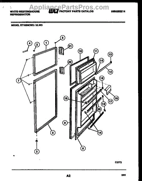 Seals refrigerator door to maintain cool air and prevent warm air leaks. Replace if torn, deformed, or causing temperature issues. Verify fit by model.