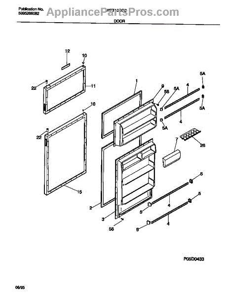 The Door Shelf Support is an OEM part for Frigidaire refrigerators, designed to hold and support the shelves on the inside of the refrigerator door. This part ensures that door shelves are securely mounted, providing stable storage for bottles, condiments, and other items.