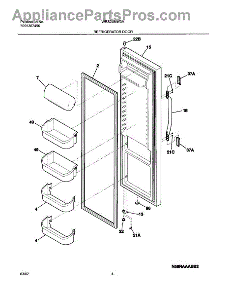 Replaces worn or broken refrigerator door hinge bearing. Installs between door and hinge bracket to support smooth opening and closing motion.